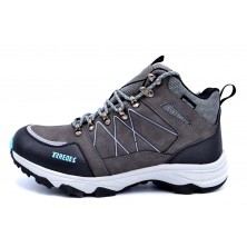 - Bota de montaña de piel serraje con membrana waterproof.